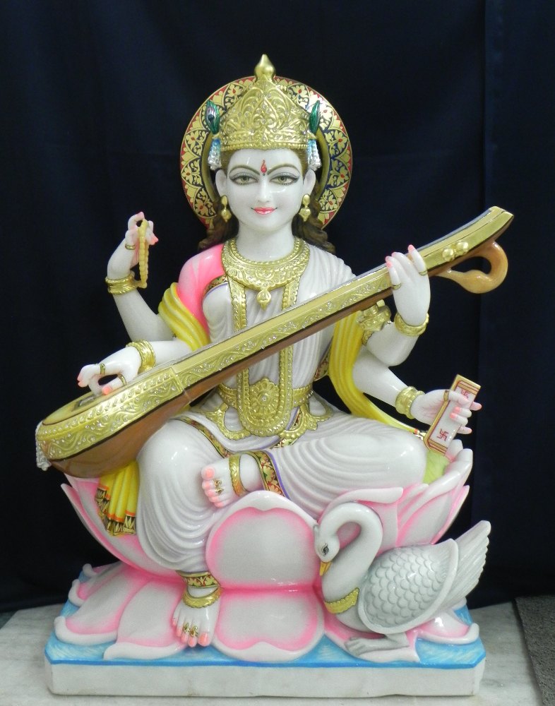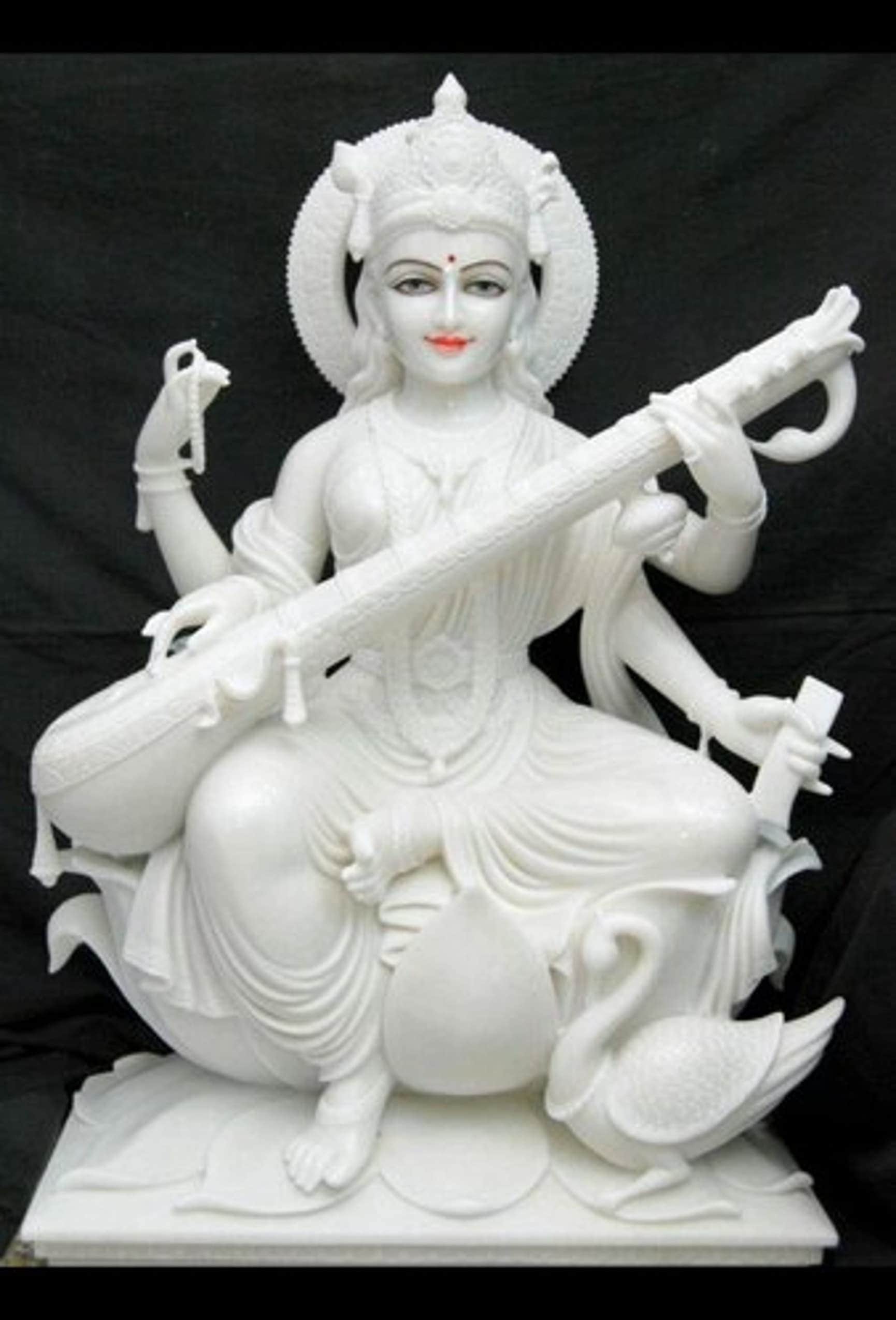 | Complexion & Attire | Dressed in pristine white (often with a flowing saree carved in fine detail). | Purity, Truth, and Clarity of knowledge that is untainted by materialistic concerns. |